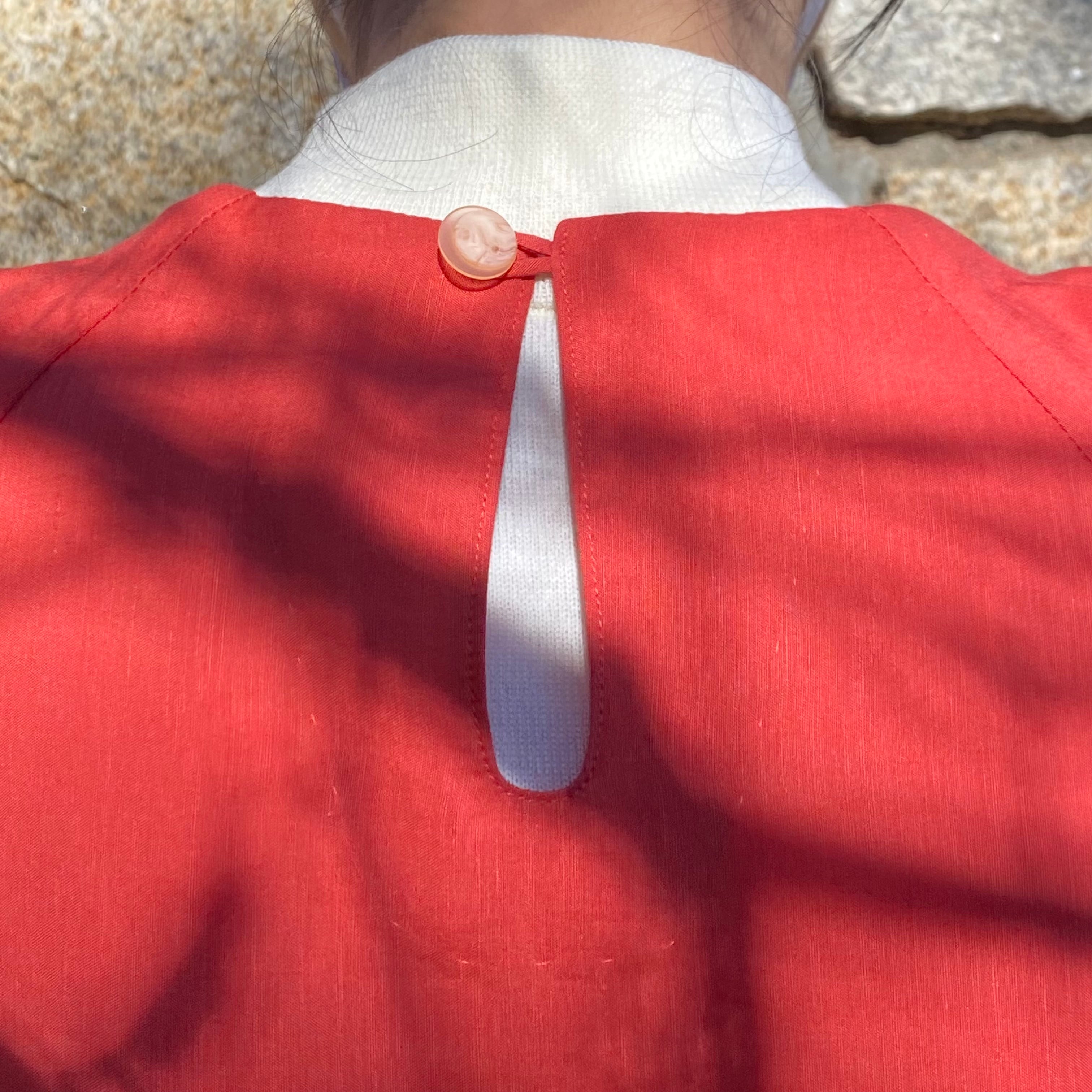 そして後ろのネックラインには、十三夜のお月さまを感じていただけるボタンがついています。